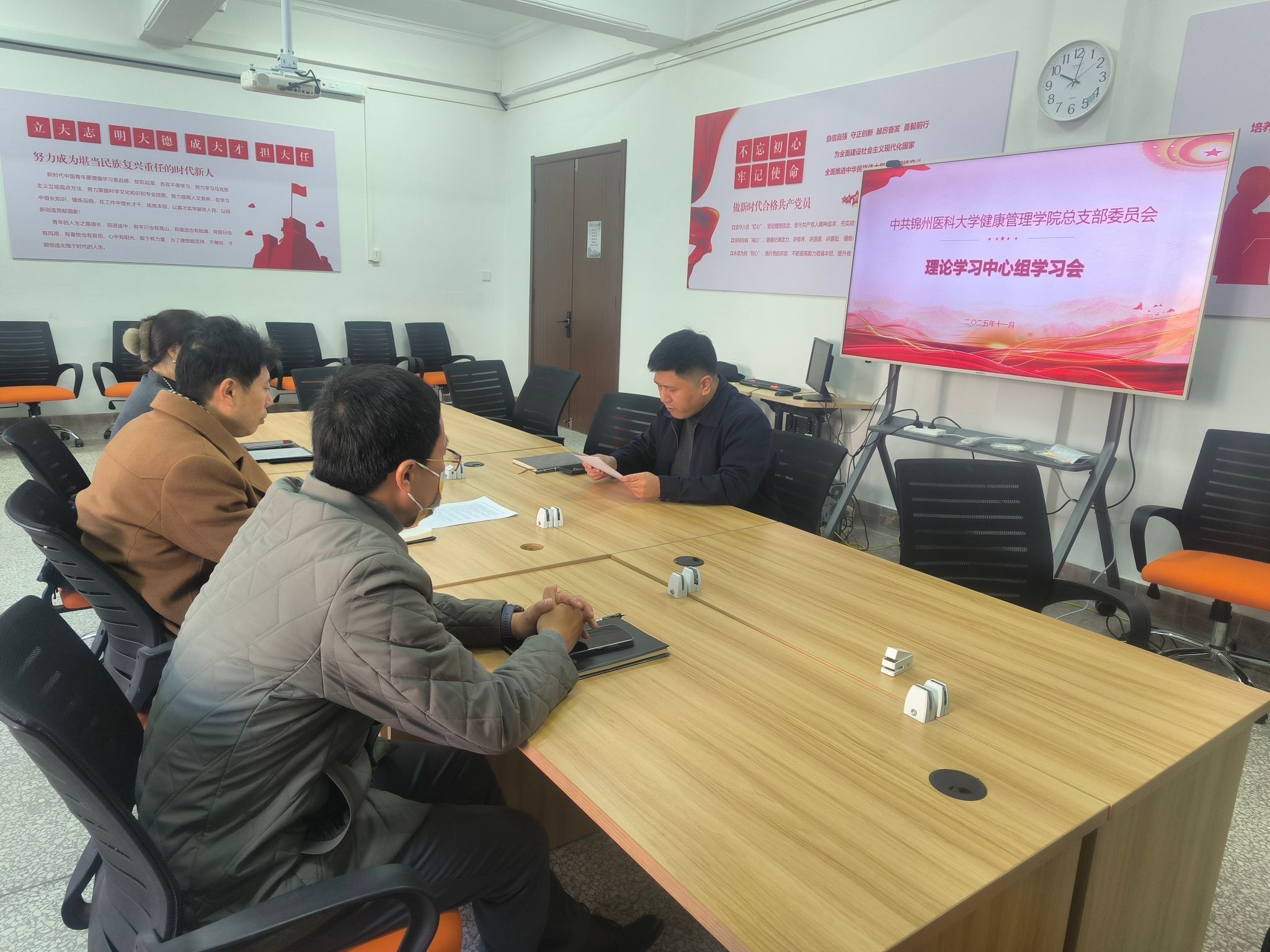 11月17日,beat365唯一官网入口在学院研讨室306召开理论学习中心组学习会,深入学习贯彻党的二十届四中全会精神。学院领导班子成员参加会议,会议由党总支书记王栋梁主持。