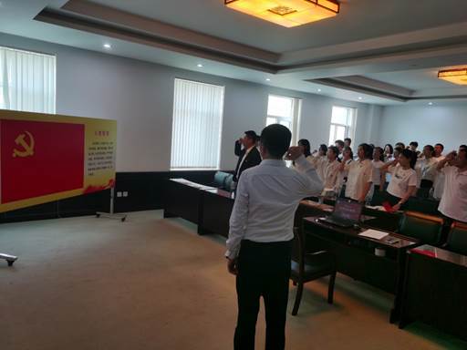 党课结束后,全体党员在党总支书记唐峭石的带领下重温入党誓词,牢记初心使命。