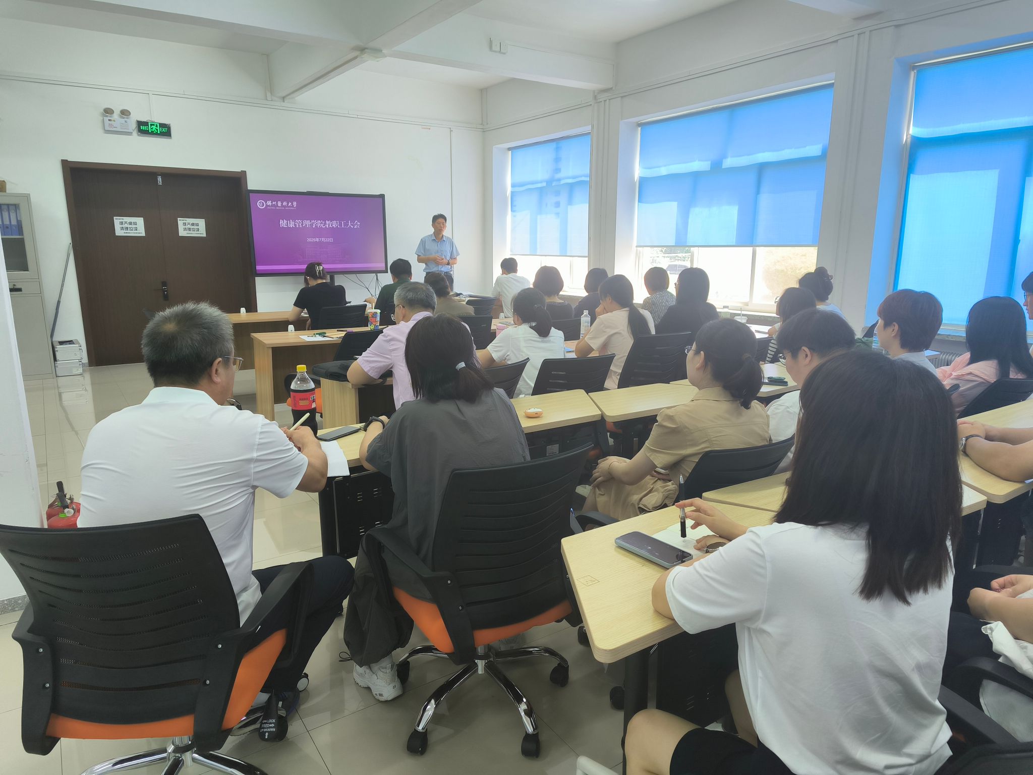 最后,科研副院长褚志亮对下半年科研工作进行部署,号召全体教职工以健康管理学硕士点学科建设带动学院科研工作整体实力提升。