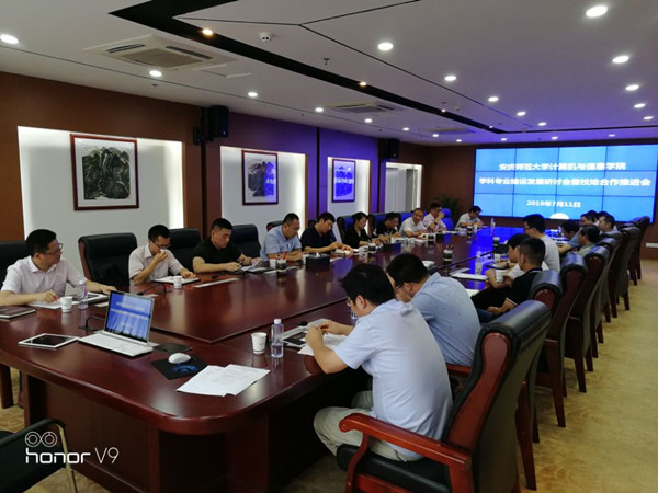 会上,安庆市筑梦新区科技部姜部长介绍了筑梦新区园区基本情况,园区平台及企业、人才入驻园区的相关政策,他希望bet36365官网高层次人才积极助力筑梦新区,不断深化和拓展合作领域,实现共赢。安徽峰速网络智能科技有限公司、深圳云安宝科技有限公司表达了强烈的合作愿望,希望进一步推进校企合作协同育人,共同服务安庆地方信息化建设。会后全体参会人员参观了筑梦新区科技展示馆和峰速智能研究院,实地了解了筑梦新区企业的科技成果。